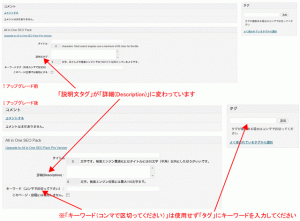 管理画面内で“説明文タグ”表記が“詳細(Description)”表記に変わりました
